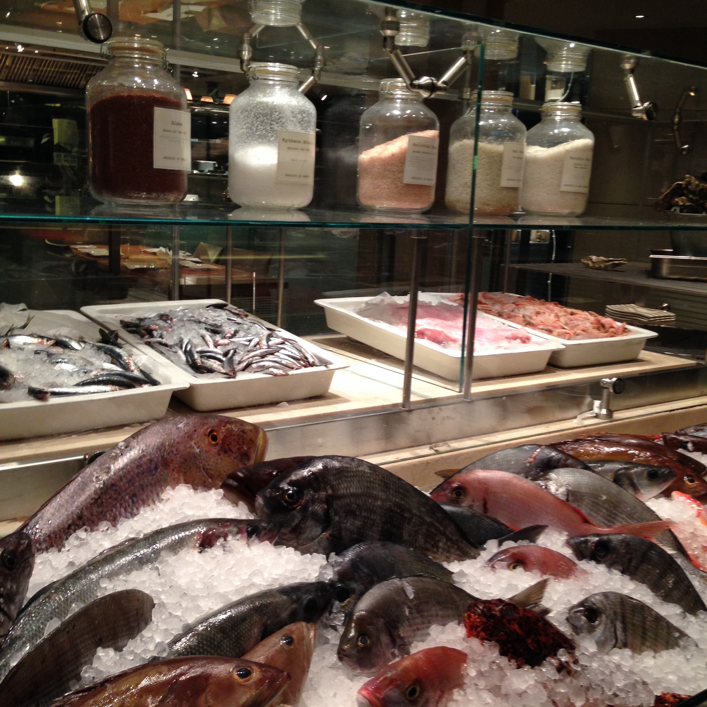 Gli ingredienti sono sempre di stagione e freschissimi, pesce e crostacei li potrete scegliere voi stessi presso il bancone posto a fianco alle cucine a vista.