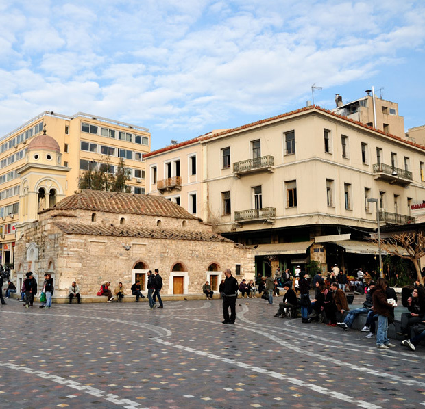 Ci troviamo a Monastiraki, più precisamente alla fine di Mitropoleos street, una delle strade più affollate del centro, dove i camerieri di ogni ristorante proveranno a adescarvi.