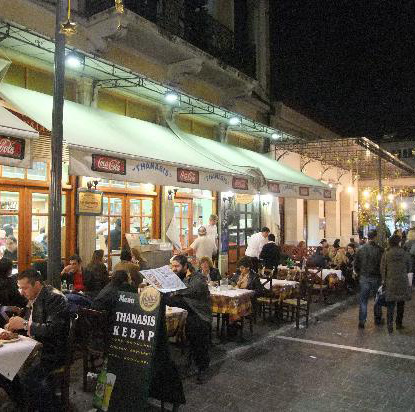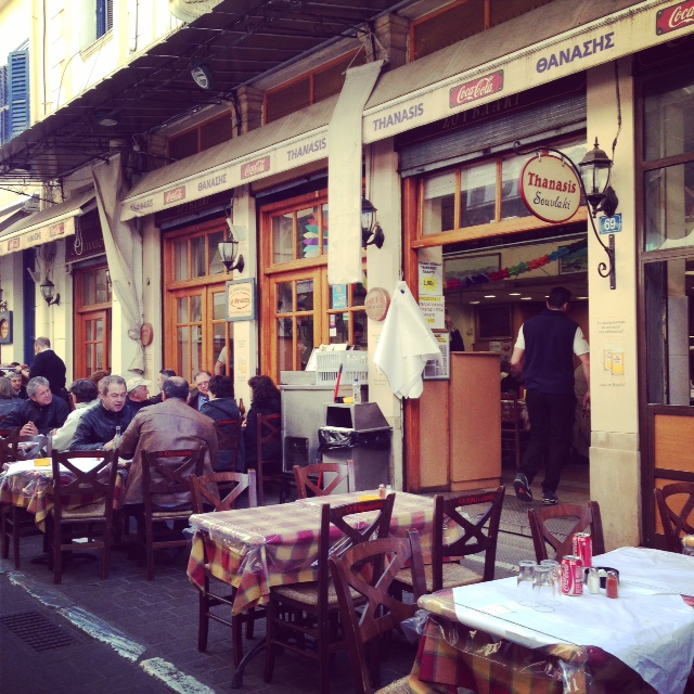 Il ristorante che vi suggeriamo non è certo esteticamente allettante e il fatto che si trovi in una zona turistica potrebbe trarvi in inganno, ma fidatevi, fidatevi e fidatevi ancora. Non ve ne pentirete, è da Thanasis che la dovete mangiare!