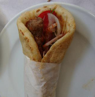 Il menù è semplice e comprende tutti i piatti tipici della cucina greca. Ma soffermatevi sui kebeb. Kebab-panino (senza patatine dentro) per una persona a 2,20 euro, Kebab-piatto sufficiente anche per due persone (pollo, agnello, maiale) con pomodori e cipolle sui 9 euro.