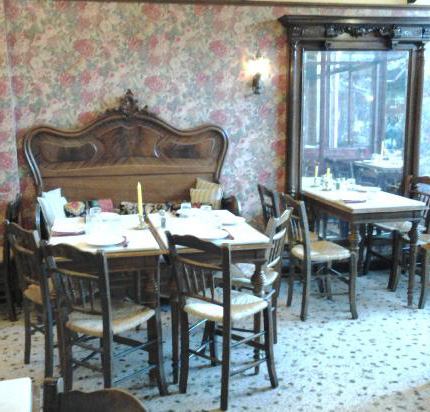 L’ambiente è davvero molto accogliente e ricorda un po’ un bistrot francese con bei quadri alle pareti, tapezzerie, mobili antichi.