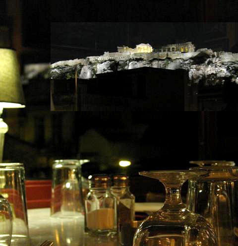 Condito da tavolo per due con vista sull’Acropoli all’ultimo piano del ristorante (sviolinate di romanticismo)