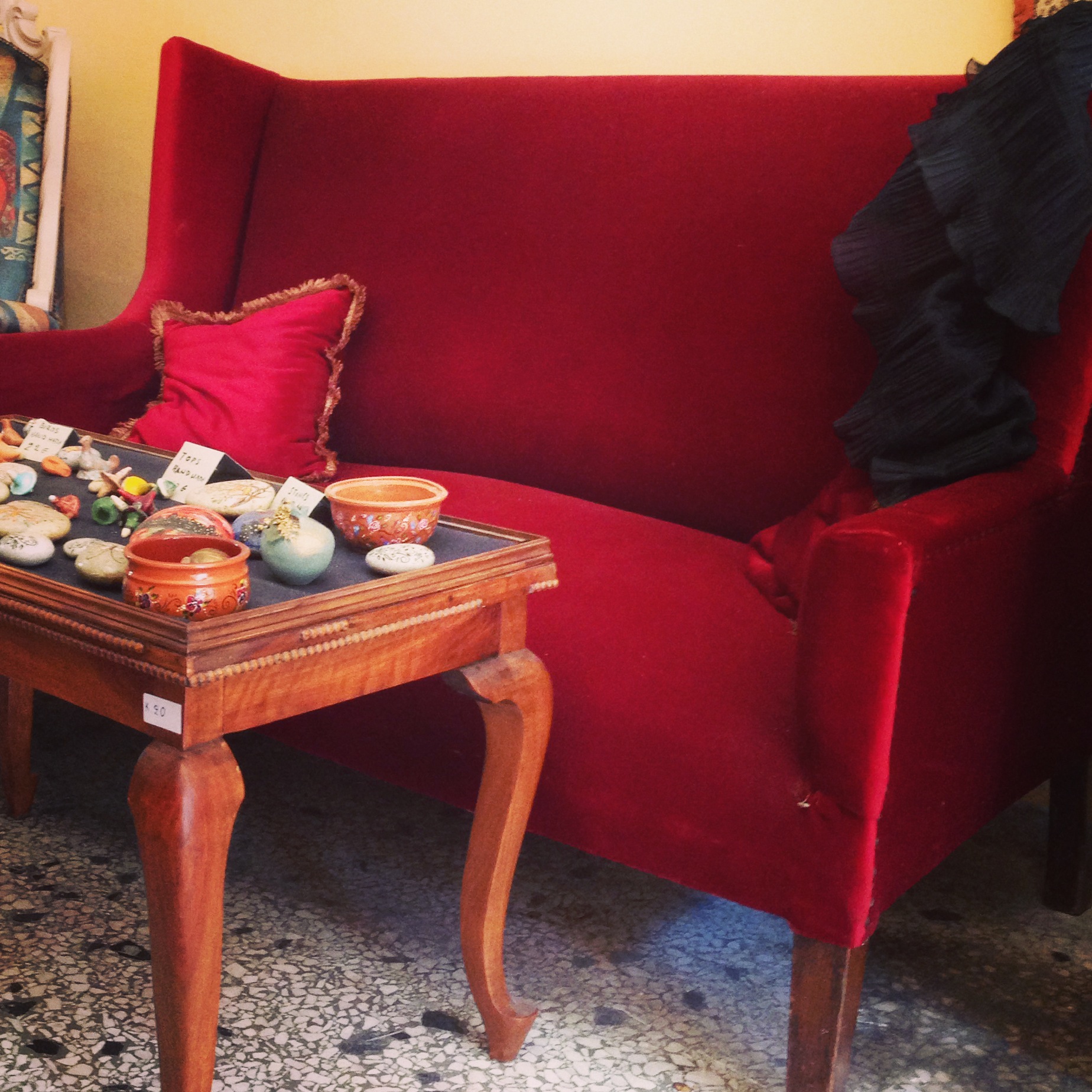 Chi vi scrive non ha saputo resistere a un divanetto “a fagiolo” color lampone …ma se è lo spazio che vi manca qui troverete anche oggetti di dimensioni più contenute e da portare con voi in valigia come delle lettere di una vecchia insegna, delle cornici particolari, dei posaceneri decorati…