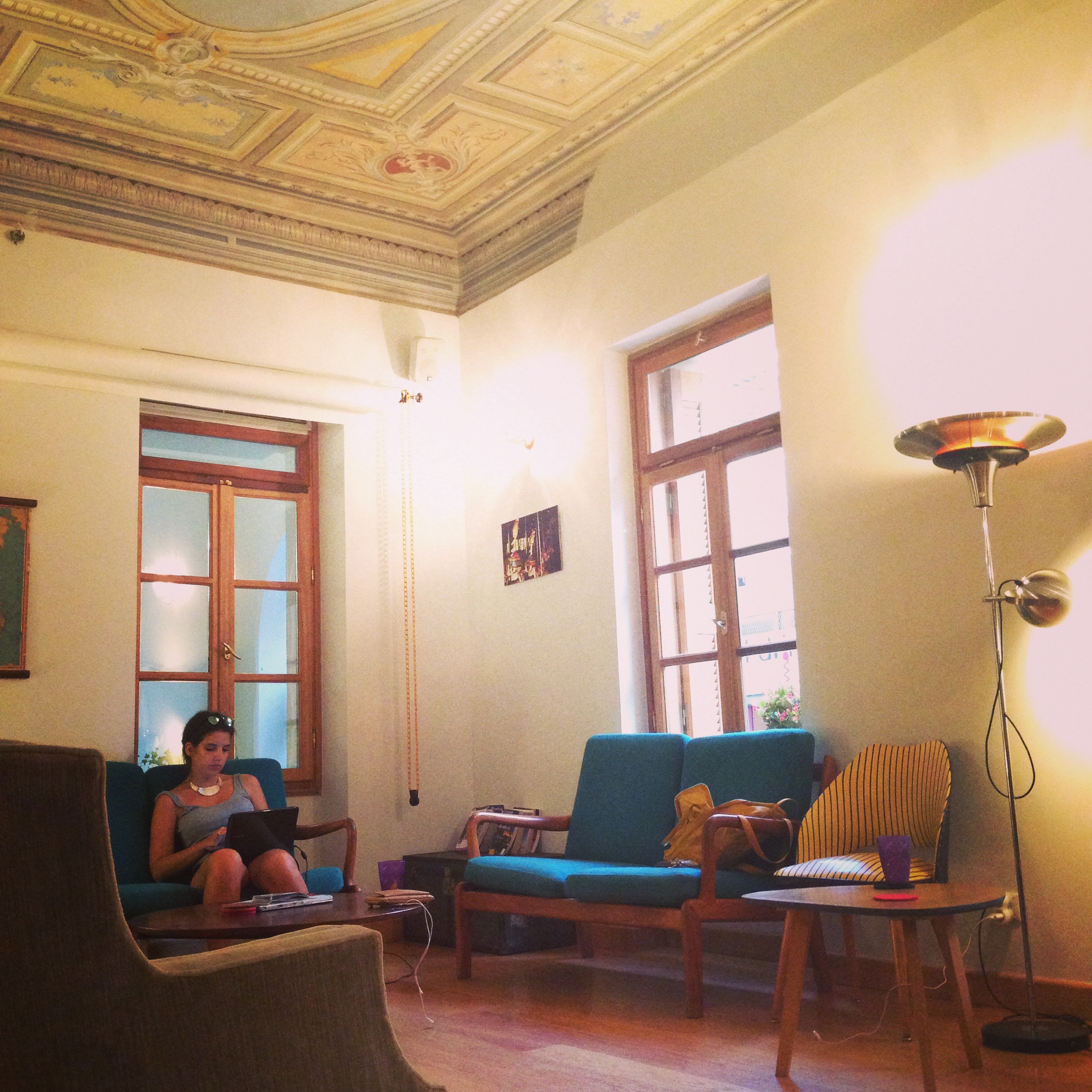 Gli spazi comuni hanno i soffitti affrescati e mobili design anni 50/70 e ogni settimana vengono organizzati aperitivi tematici nella zona bar con lo scopo di stimolare l’incontro tra gli ospiti dell’ostello e proporre differenti letture della città.