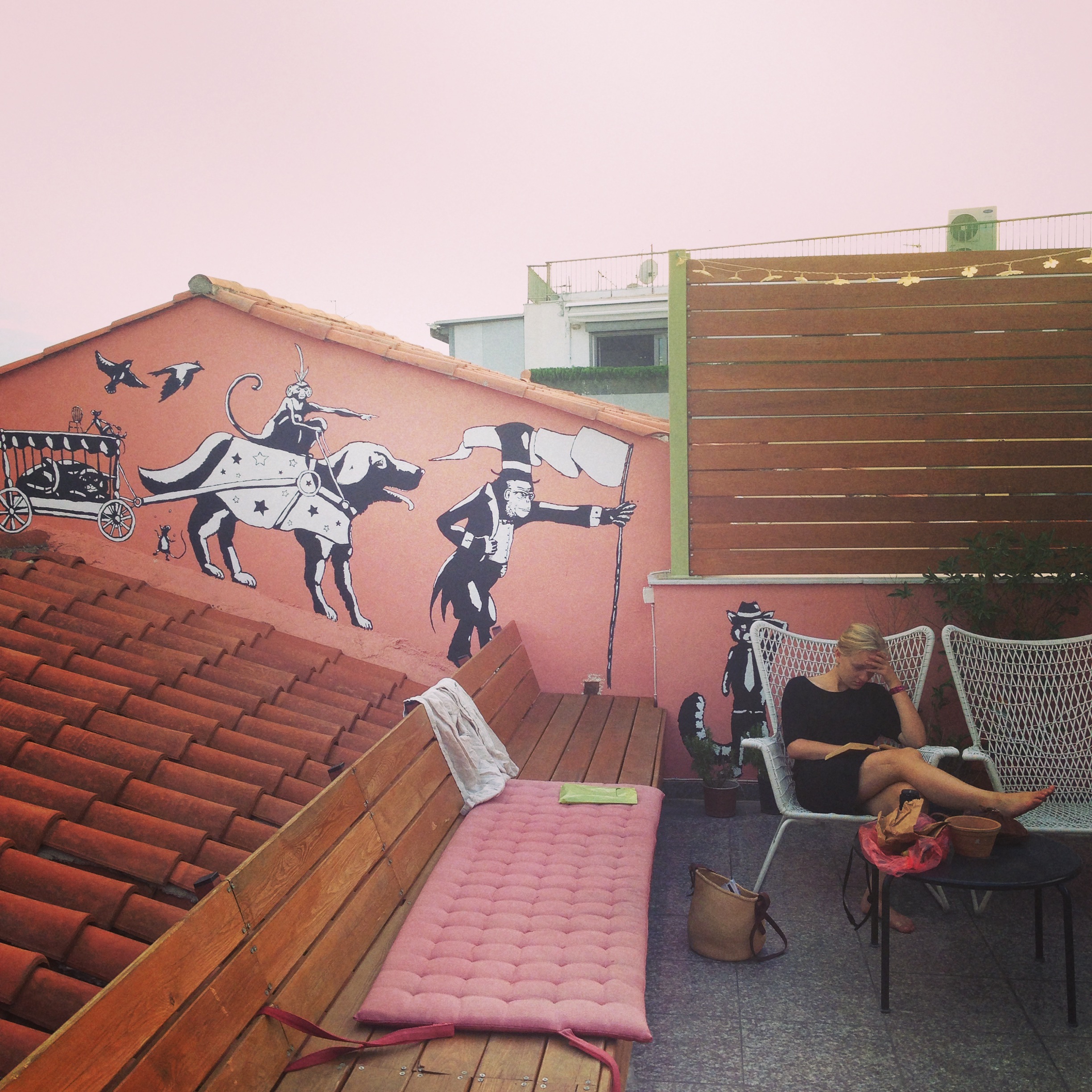 Come spesso accada ad Atene, il roof ospita un piccolo ma accogliente terrazzo con vista Acropoli dove regna il silenzio e sembra l’ideale rilassarsi con un buon libro e una birretta.