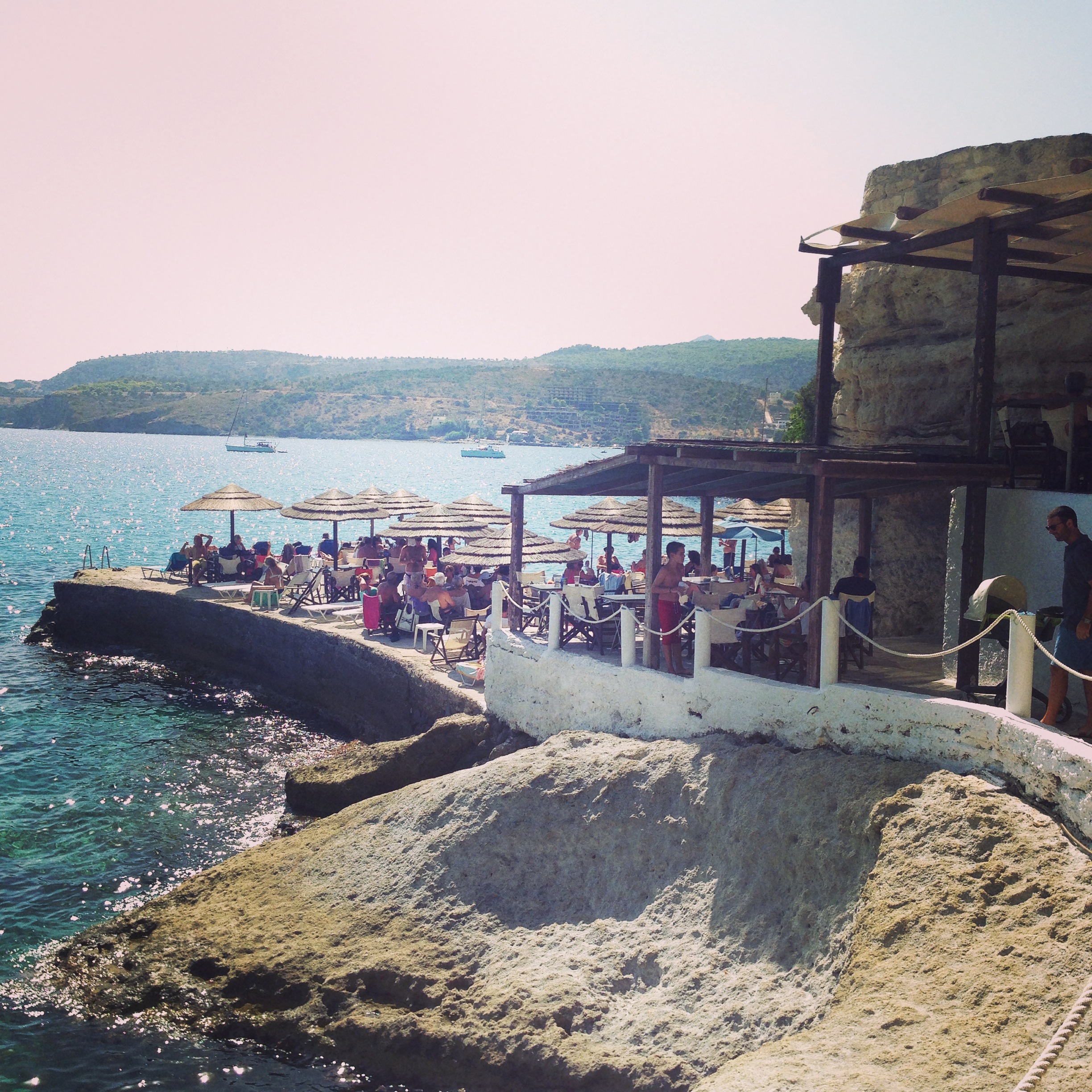 SOTTO GROTTO (o SOTOS) – un beach bar vintage costruito sugli scogli…a pochi Km da Agia Marina. Qui l’acqua è verde smeraldo e si respira aria d’altri tempi. Uno spettacolo!
