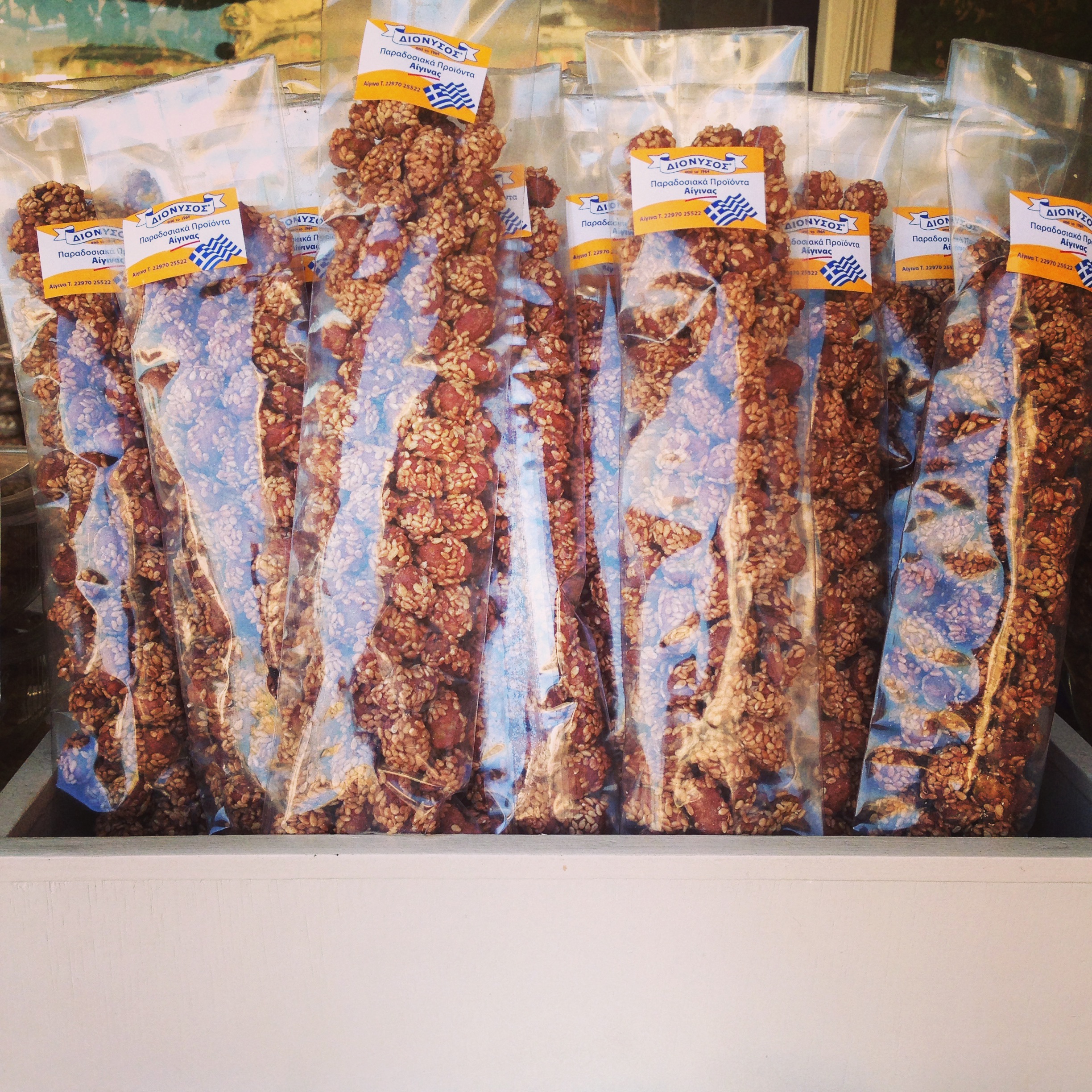 Prodotto con nome di origine protetto, il pistacchio di Egina si può trovare in moltissime forme: al naturale, arrostito, salato, nei dolci, col cioccolato, nel liquore, nelle marmellate e non solo. Esiste perfino il festival del pistacchio, che si svolge ogni anno a settembre.
