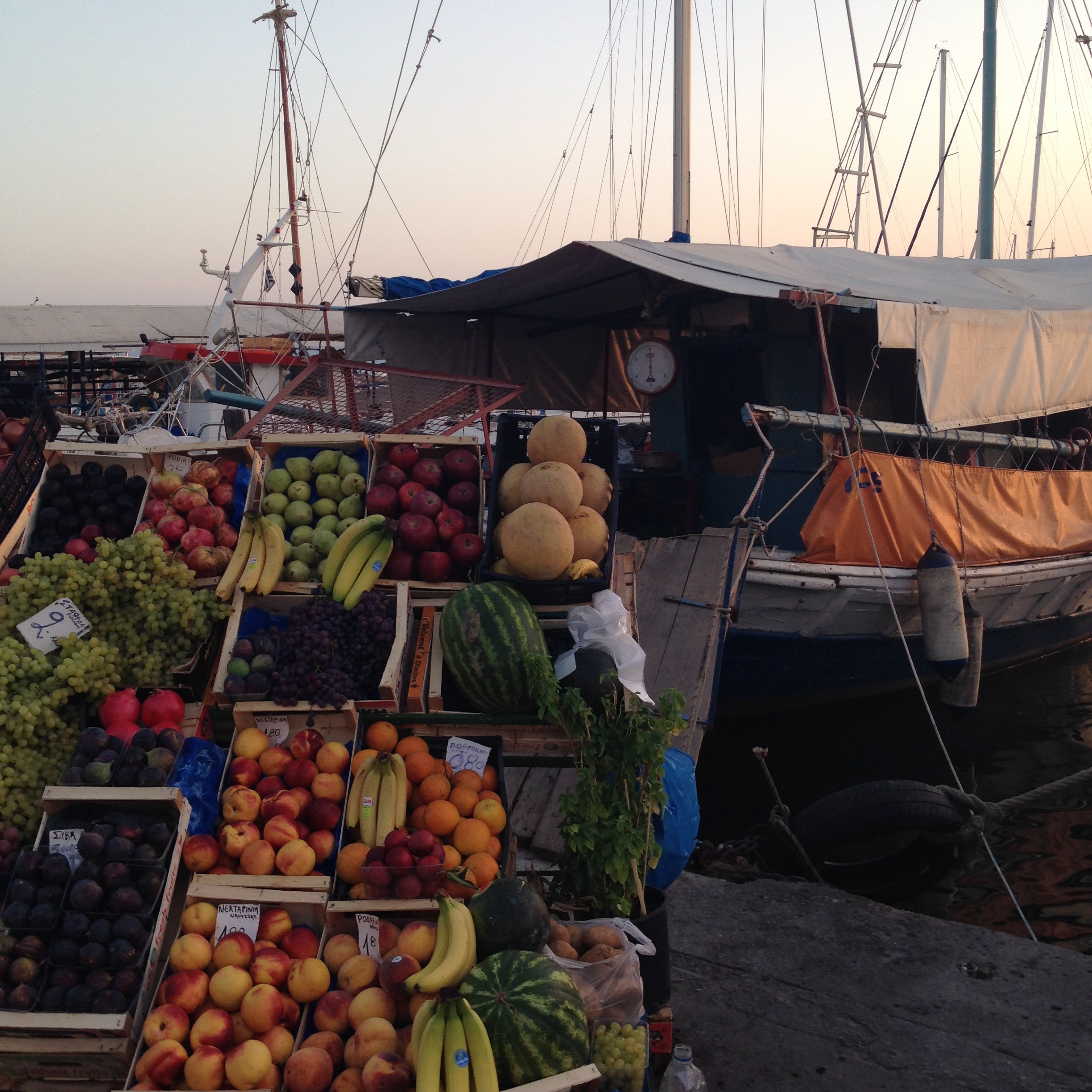 Qui al porto di Aegina vi segnaliamo di fare acquisti di frutta e verdura alle bancarelle del mercatino galleggiante, vi sono infatti delle barche in legno ormeggiate al porto che hanno anche una bancarella sulla banchina dove espongono la mercanzia. Tutto prodotto in loco, economico e freschissimo!