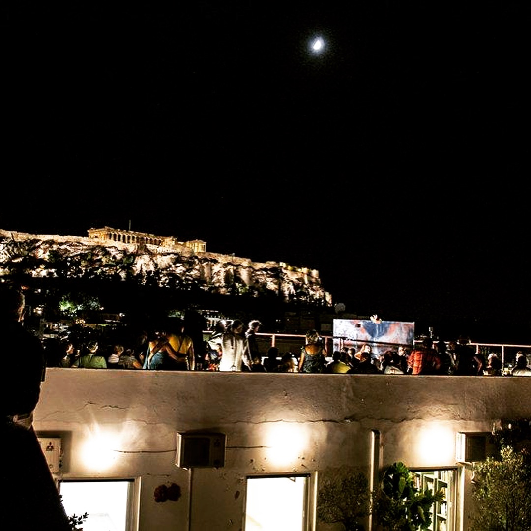 Panayotis e Maria non si fermano alle lezioni ma hanno fatto di Lexi-Logos un punto di ritrovo culturale e nella bella stagione organizzano periodicamente vari eventi sul più bel terrazzo vista Acropoli della città.